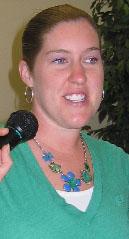 Kiwanis Club of Omaha Golden K President Carolyn Law presents Dr. Tricia Hultgren with a pen following Dr. Hultgren's presentation on dermatology.