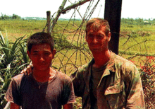On the night of April 12, Norris didn't dare take the two ARVN soldiers who had faltered the night before.[29] He was prepared to go alone when Petty Officer Third Class Nguyen Van Kiet[14] volunteered to go with him.[5] They worked their way slowly upriver until they came upon an abandoned, destroyed village.[32] They found clothing and an abandoned sampan which they used to disguise themselves as fishermen.[29] They rowed quietly up river, but even in the pitch dark and dense fog they could see large numbers of North Vietnamese soldiers and tanks on the shoreline. Stopping to check his map at one point, Norris suddenly realized that two NVA soldiers were sitting about 10 metres (33 ft) away. Fortunately, they were asleep. Traveling upriver in the sampam, they broke out of the heavy fog and found themselves under the Cam Lo bridge. They had passed Hambleton’s position more than 30 minutes ago. Turning around, they worked their way south before putting ashore and began to search for Hambleton.[29] They finally found him sitting in a clump of bushes, alive but partly delirious and extremely weakened, having eaten only four small ears of corn in 12 days and having lost 45 pounds (20 kg) since his plane was shot down.[29] He weighed only 128 pounds (58 kg). Sunrise was coming, and although Norris thought it best to wait until dark to return downriver, Hambleton needed to be evacuated immediately. Despite the risk, they hid Hambleton in the bottom of the sampan, covered him with bamboo, and started downriver.[14]