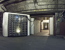 The JCS placed the Ent AFB Space Detection and Tracking System (496L System with "Philco 2000/Model 212" computer)[12] "under the operational control of CINCNORAD on December 1, 1960";[13] during Cheyenne Mountain nuclear bunker excavation, and the "joint SAC-NORAD exercise…Sky Shield II"--and on 2 September 1962--"Sky Shield III" were conducted for mock penetration of NORAD sectors.[14] NORAD command center operations moved from Ent AFB to the 1963 partially underground "Combined Operations Center" for Aerospace Defense Command and NORAD[15] at the Chidlaw Building. NORAD had an exhibit at the 1964 World's Fair,[16] and on 30 October 1964, "NORAD began manning" the Cheynne Mountain Combat Operations Center[13] and by 1965, about 250,000 US and Canadian personnel were involved in the operation of NORAD,[not in citation given][17] On 1 January 1966, Air Force Systems Command turned the COC over to NORAD[18] (the NORAD Cheyenne Mountain Complex was accepted on 8 February.)[13]:319