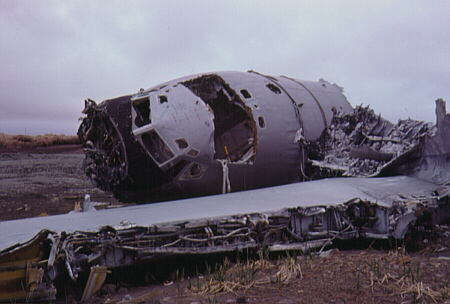 The airplane was a virtual total loss. They salvaged one of the four jet engines, part of the tail section and about 60,000 pounds of electronic gear from the interior. Staff operational errors and weather were listed as the causes of the accident. No responsibility was assigned to any crew member.