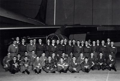 Hi Res This is a photo of the original Nancy Rae team that deployed to Shemya on New Years Eve, 1961. They were known as "Ali Baba and The Forty Thieves". The photo above was taken inside hangar #2 shortly after arrival with Nancy Rae (59-1491) in the background. The original crew was assembled from many bases and assigned to Wright-Patterson, AFB Ohio. Nancy Rae eventually became known as Wanda Belle and Rivet Ball. For a more complete story go to "Related Stories" on page #12 and read "Nancy Rae Days" by Richard M. Tsuda. SSgt. Ted Roth TSgt. Billy Simeroth Name ? TSgt Ed Litavic SSgt Tom Warford TSgt. Earl Beach Capt. Jim Taylor Capt. Tom Nason Capt. Joe Wojcik Maj. Joe Derie Maj. Neil McCulley Col. Webster Plourd Capt. John Davey Maj. David M. Critchlow l/Lt. Lary Wilson Maj. Reid Hoisington SSgt. Frank Finlayson Name ? SSgt. Bruce Stockholm Capt. Walter Smith Name ? Capt. George Krieg Sitting L-R: TSgt. Al Fleury TSgt. Sam Viola TSgt. Dick Tsuda TSgt. Doug Ward (rear) MSgt. Albert Sokinas TSgt. Fred Hoffman TSgt. Jim Michaels TSgt. Jack Halbirt Mr. Pete Branscom TSgt. Bill Miller TSgt John McDuffie MSgt. Arley Predmore SSgt Louie Lovato TSgt. Bieberly SSgt. Bill O'Keefe A1C Robert Davis SSgt. Roger Barnett Name ? Capt. Irvin Hosie |