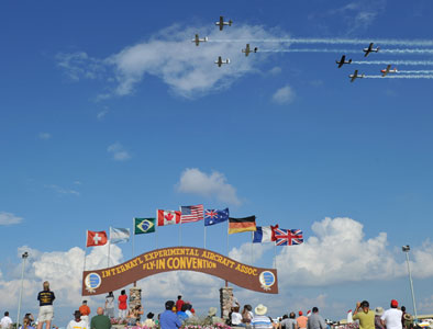 Sean D. Tucker performed one of his first official duties as EAA's new Young Eagles chairman Thursday at the Chicago Air and Water Show Media Day held at the Gary/Chicago International Airport (GYY). There he presented Ken Rapier, EAA 453453, with a leather bomber jacket to honor Ken for flying 1,000 kids through the Young Eagles program.
