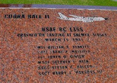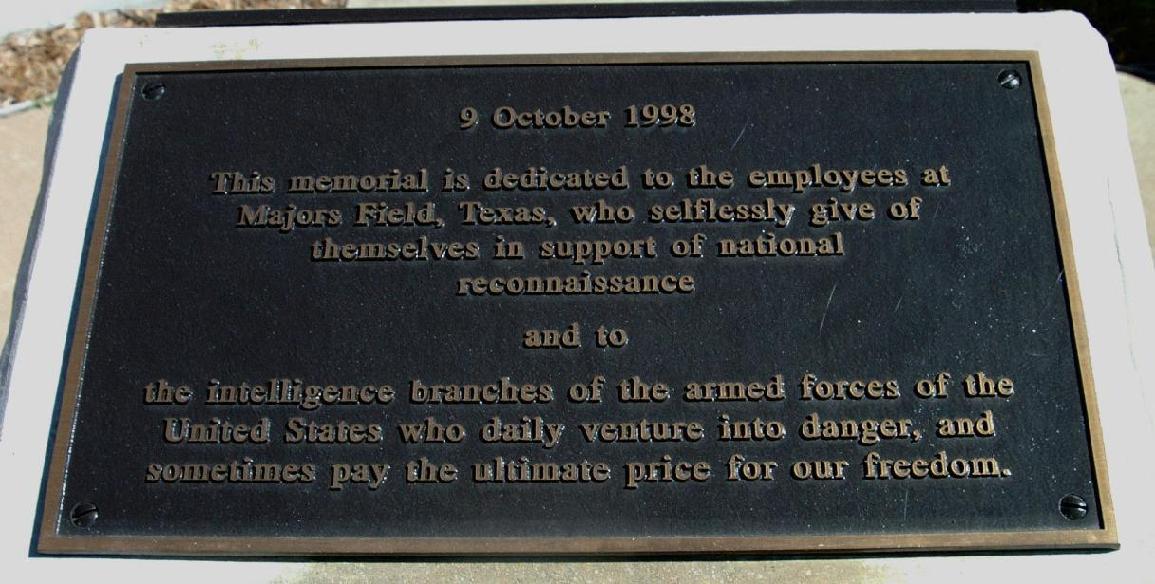 Hi Res The reconnaissance memorial below is located at Majors Field in Greenville, Texas. It was formally dedicated on 9 October 1998 by Lt. General Kenneth Minihan (Director: NSA / CSS). The ten missions memorialized are those platforms where Greenville had a significant or major role in providing the systems involved. The eagle standing guard over the memorial was created by Martin Kakosian a native Armenian who, as a teenager, witnessed the crash of Sun Valley I (56-60528) shot down by a Soviet Mig-17 on 2 September 1958. 1- USAF "HAYSTACK" (RB-50G, #47-0133) Assigned to the 6091 Reconnaissance Squadron, Yokota AB, Japan. Crew of 16 lost in the Sea of Japan on 10 September 1956. Cause: Unknown 2- USAF "SUN VALLEY I" (C-130A-II, #56-0528) Assigned to the 7406 Support Squadron, Incirlik AB, Turkey. Crew of 17 shot down by Soviet Mig-17 near Sasnashen, Armenia on 2 September 1958. 3- USAF "RIVET STAND / BRIAR PATCH" (KC-135R, #59-1465) Assigned to the 55th SRW, Offutt AFB, Nebraska. Crashed on takeoff from Offutt with the loss of one crewmember on 17July 1967. 4- USN "USS PUEBLO" (USN, AGER-2) Assigned to the US Navy 6th Fleet. The USS Pueblo was captured by forces of North Korea in the Sea of Japan on 23 January 1968 with the loss of one crewmember. 5- USN "KELLI" (EC-121M, #135745) Assigned to Reconnaissance Squadron 1 (VQ-1), based at NAS Atsugi, japan. Crew of 31 shot down in the Sea of Japan by the North Korean Air Force on 15 April 1969. 6- USAF "RIVET AMBER" (RC-135E, #62-4137) Assigned to the 24th SRS, 6th SW, Eielson AFB, AK. Crew of 19 lost in the Bering Sea on 5 June 1969. Cause: Unknown 7- USAF "PROJECT III" (C-135B, #61-0331) Assigned to the 4950th Test Wing, Wright-Patterson AFB, Ohio. Crew of 24 crashed into the Pacific Ocean southwest of Hawaii on 13 June 1971. 8- USAF "COBRA BALL II" (RC-135S, #61-2664) Assigned to the 24th SRS, 6th SW, Eielson AFB, AK. Crashed while landing at Shemya with the loss of six crewmembers on 15 March 1981. 9- USAF "RIVET JAW" (RC-135T, #55-3121) Assigned to the 6th SW, Eielson AFB, AK. Crew of three lost on 25 February 1985 while executing a microwave approach at Valdez, AK. 10- USA "SENIOR BAND" (RG-8A, #85-0048) Assigned to Company A, 470th Military Intelligence Group, Ft. Huachuca, AZ. Crew of two crashed on 22 September 1986 near Douglas Bisbee Airport, AZ. |